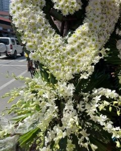 Heart-shaped easel spray with orchids